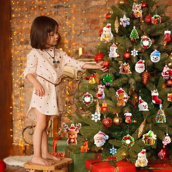 Acryl Kerst Sleutelhanger Hanger Santa Claus En Sneeuwman Vakantie Geschenkdoos Pluchen Speelgoed Sleutelhangers Speelgoed